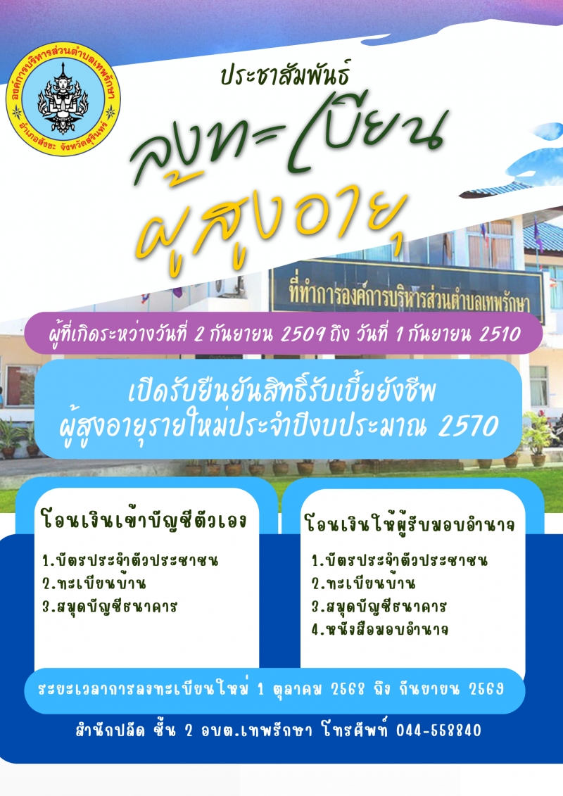 ประชาสัมพันธ์ลงทะเบียนผู้สูงอายุ ประจำปีงบประมาณ 2570...