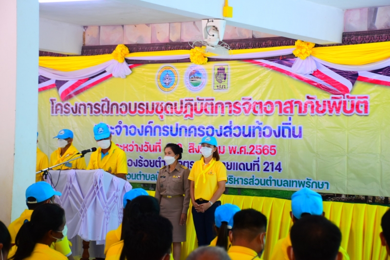 เมื่อเวลา 09.00 น. นายพัฒนา พึ่งผล ปลัดอำเภอสังขะ เป็นประธานพิธีเปิดงานอบรมโครงการฝึกอบรมชุดปฏิบัติการจิตอาสาภัยพิบัติ ประจำองค์กรปกครองส่วนท้องถิ่น ณ กองร้อยตำรวจตระเวนชายแดนที่ 214 ที่จัดขึ้นโดยองค์การบริหารส่วนตำบลเทพรักษา ร่วมกับองค์การบริหารส่วนตำบลบ้านจารย์ โดยมีวัตถุประสงค์เพื่อเสริมสร้างศักยภาพและความเข้มแข็ง ให้แก่ชุดปฏิบัติการจิตอาสาภัยพิบัติประจำองค์กรปกครองส่วนท้องถิ่น ที่สามารถปฏิบัติหน้าที่ช่วยเหลือเจ้าพนักงานในการป้องกันและบรรเทาสาธารณภัย ได้อย่างมีประสิทธิภาพ เพื่อส่งเสริมความรู้ด้านการจัดการสาธารณภัยเบื้องต้น ระบบบัญชาการเหตุการณ์ (Incident Command System : ICS) การควบคุมสั่งการ การบริหารจัดการสาธารณภัยในพื้นที่เกิดเหตุ ที่มีรูปแบบและมาตรฐานเดียวกัน ให้กับชุดปฏิบัติการจิตอาสาภัยพิบัติ เพื่อพัฒนาระบบการปฏิบัติงานกู้ภัยในภาวะฉุกเฉินให้เป็นระบบ รวดเร็ว และทันต่อเหตุการณ์ และเพื่อเป็นการสนับสนุนให้โครงการจิตอาสาพระราชทาน 904 วปร. ในระดับพื้นที่ให้มีความเข้มแข็งและมีทักษะความรู้ ความชำนาญในการจัดการภัยพิบัติ อันจะส่งผลให้ประชาชนในพื้นที่มีความปลอดภัย ในชีวิตและทรัพย์สิน โดยมีนายอิทธิพล ร่วมพัฒนา นายก อบต.บ้านจารย์ นางสาวศิรินภา พัวพัฒนโชติ นายก อบต.เทพรักษา กำนัน ผู้ใหญ่บ้าน สมาชิกสภา ทั้งสองตำบลเข้าร่วมเป็นเกียรติในพิธีเปิดการอบรมในครั้งนี้///////